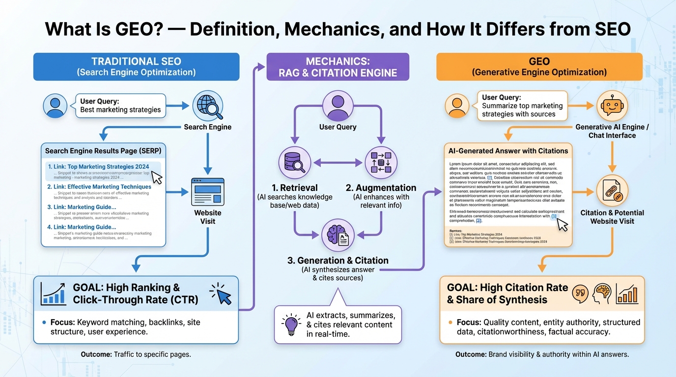 1. What Is GEO? — Definition, Mechanics, and How It Differs from SEO