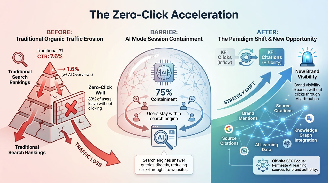 Off-site brand visibility gains urgency from another trend: zero-click searches are eating traditional organic traffic.
