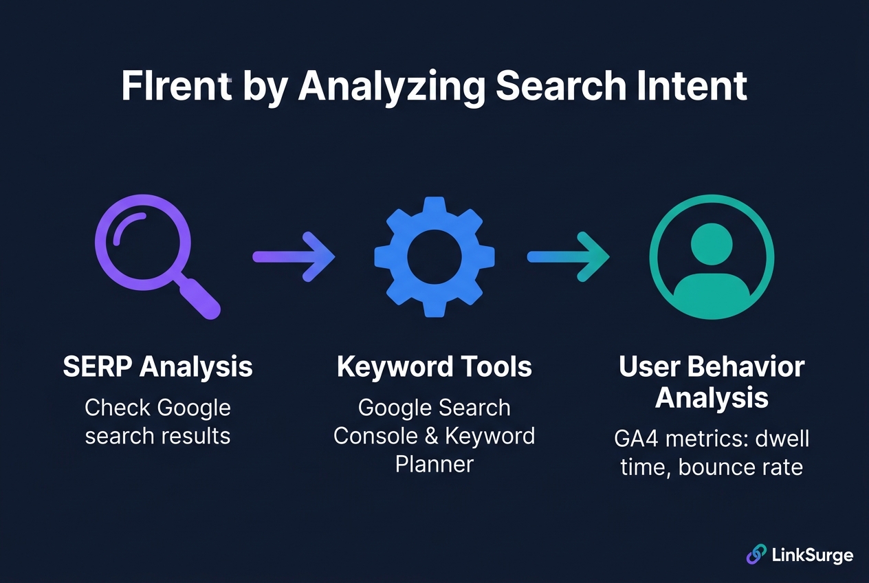 - SERP analysis is the most reliable method — Searching your target keyword and examining the top 10 results reveals exactly how Google interprets intent